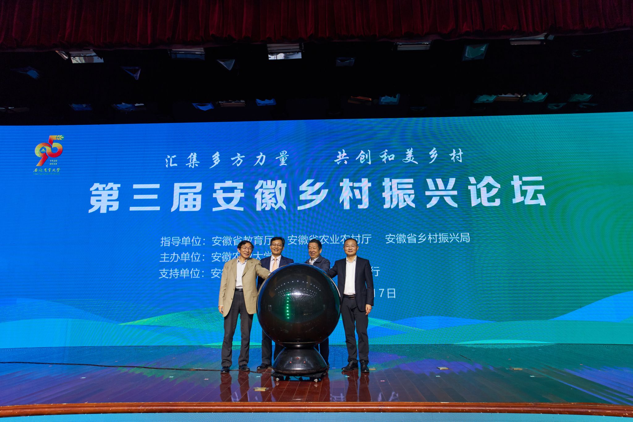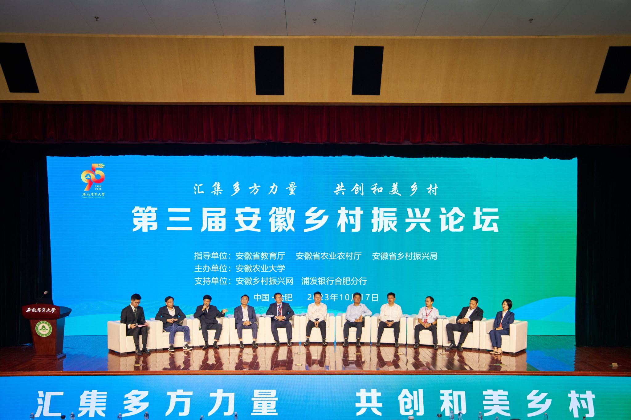 本网讯 10月17日上午,第三届安徽乡村振兴论坛在校第一报告厅举行。省乡村振兴局党组副书记、副局长许光友,省委教育工委委员、省教育厅副厅长储常连,省农业农村厅一级巡视员孔少林,省供销社副主任杜爱玉,省乡村建设高校联盟18所发起高校领导出席论坛;省委组织部、省教育厅、省科学技术厅、省人力资源和社会保障厅、省自然资源厅、省生态环境厅、省住房和城乡建设厅、省农业农村厅、省文化和旅游厅、省乡村振兴局、省供销社相关处室负责同志,校直部门和学院负责人及师生代表参加论坛。校党委常委、副校长操海群主持论坛。