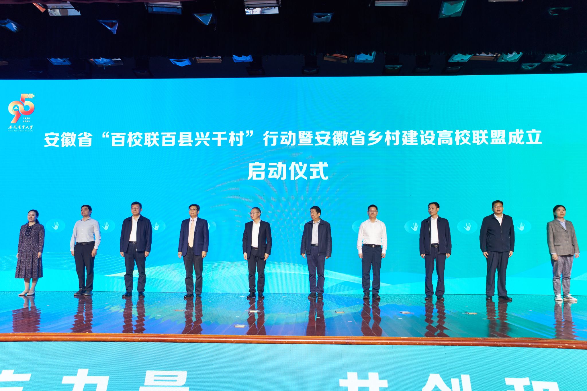 储常连、许光友与发起高校,地市教育、乡村振兴部门,县(市、区)代表共同启动安徽省“百校联百县兴千村”行动暨安徽省乡村建设高校联盟成立仪式。