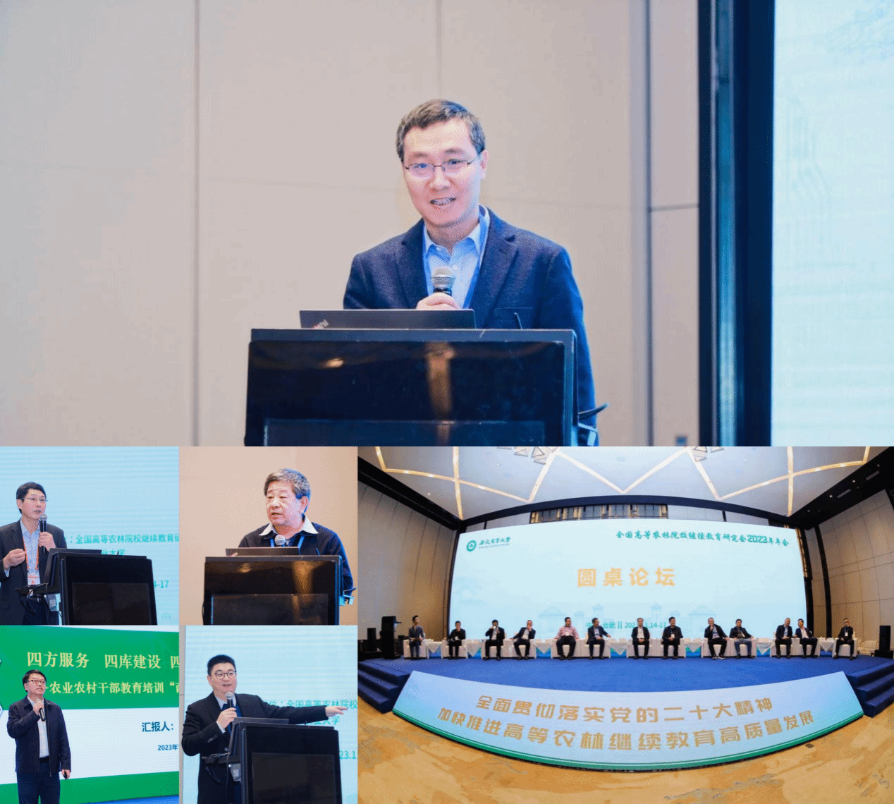本次会议由全国高等农林院校继续教育研究会主办,我校承办。年会由开幕式、专题报告、圆桌论坛和闭幕式四项议程组成。中国农业大学继续教育学院院长任金政主持大会专题报告,南京农业大学继续教育学院院长毛卫华主持闭幕式。任金政对会议进行了总结,他呼吁高等农林院校继续教育界同仁以研究会为平台,不断加强合作,增强交流,共同在继续教育领域深入探索,为继续教育事业的高质量发展、教育强国建设、农业强国建设作出更大贡献!