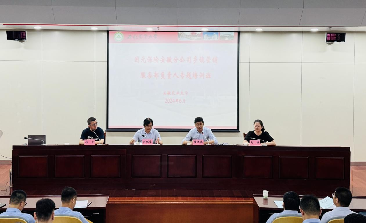 6月25日,我校承办的国元保险安徽分公司乡镇营销服务部负责人专题培训班在我校开班。国元农业保险股份有限公司农业保险部总经理、安徽分公司总经理翟光瑞,我校乡村振兴学院、继续教育学院院长刘鹏凌等出席。来自安徽省各乡镇营销服务部负责人共81名学员参加培训。