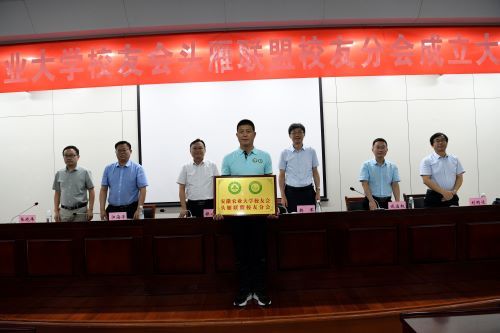 乡村振兴学院、继续教育学院负责同志作分会筹备工作报告;韩军宣读《关于成立安徽农业大学校友会头雁联盟校友分会》的批复。