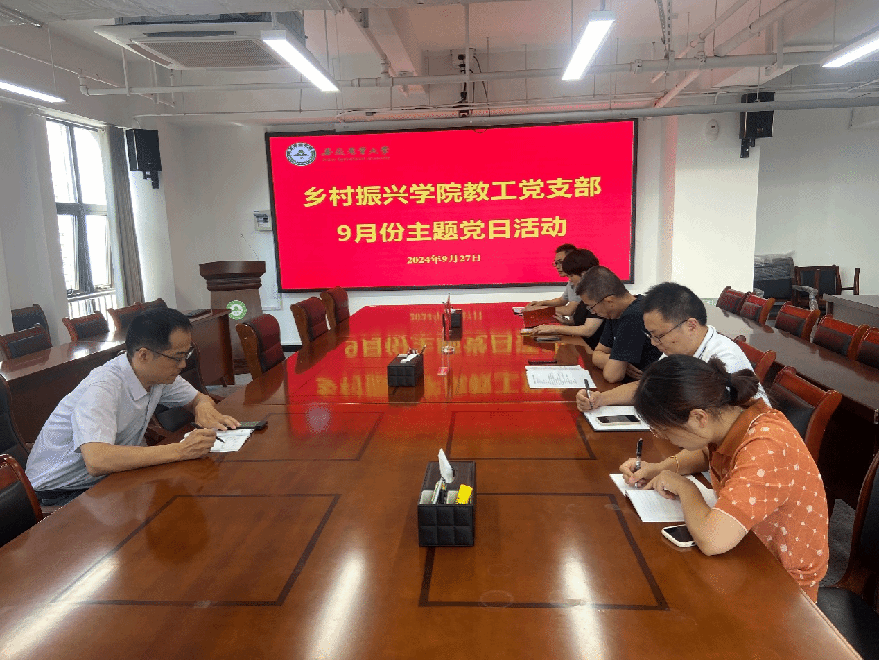 9月27日下午,乡村振兴学院教工党支部开展9月份主题党日活动。活动由党支部副书记顾坚主持。
