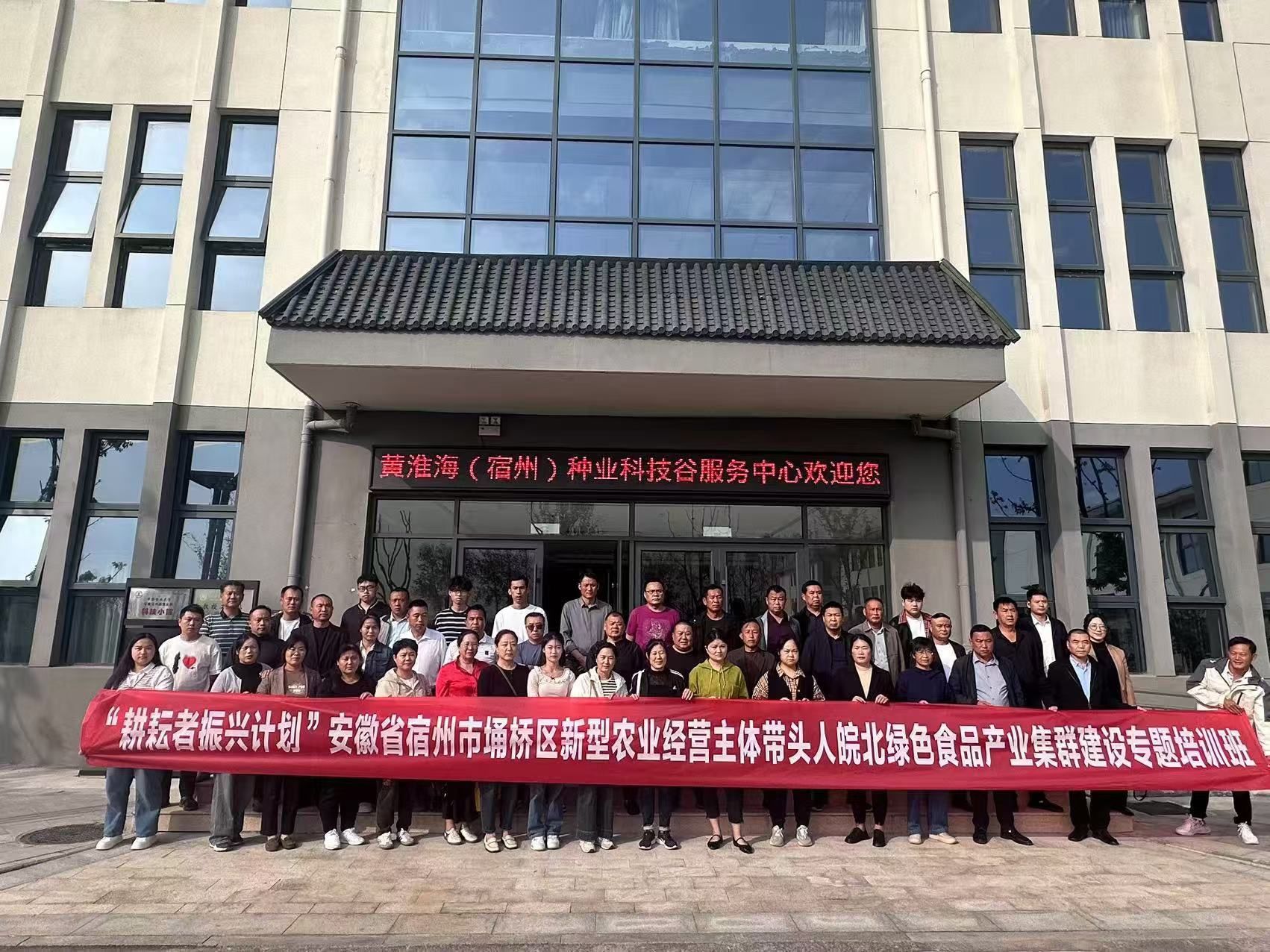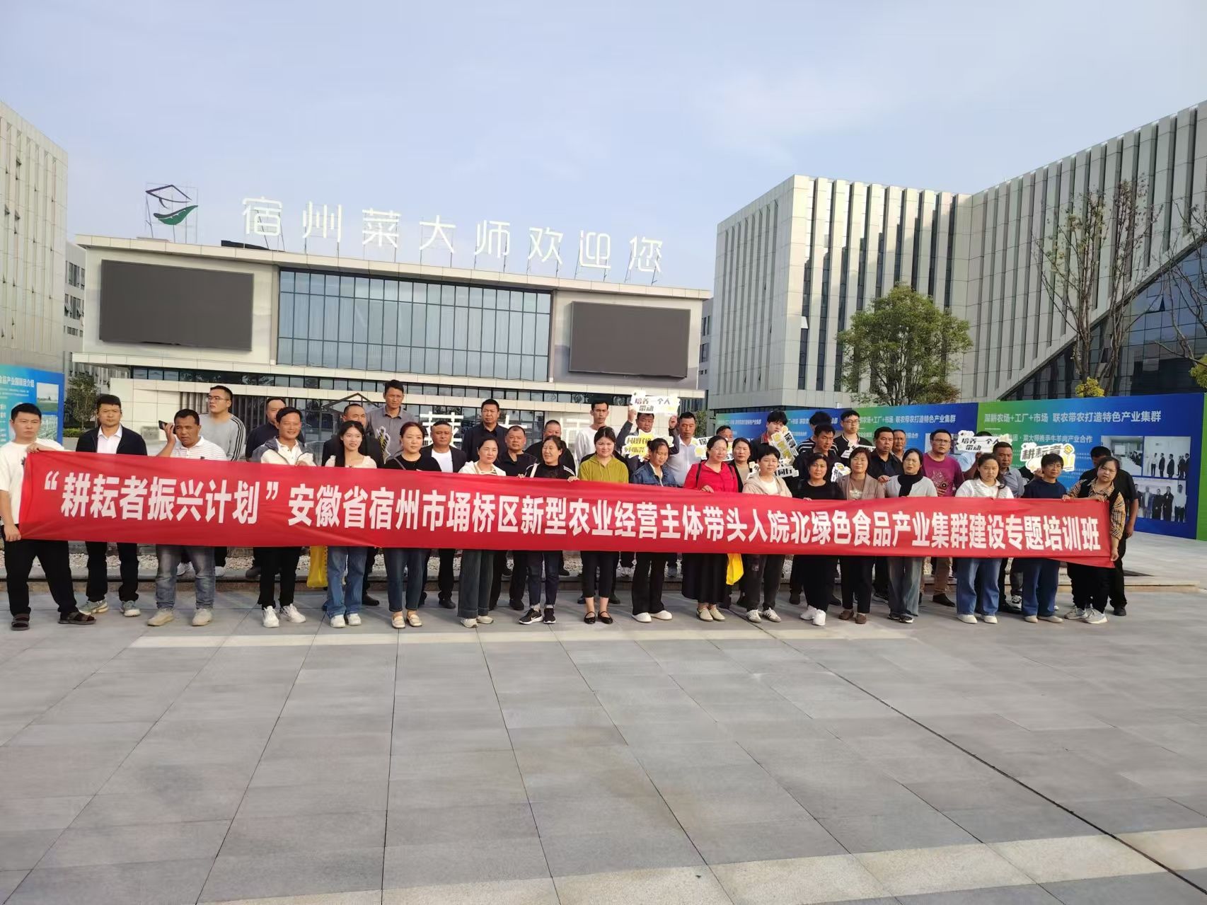 10月16日,“耕耘者振兴计划”安徽省宿州市埇桥区新型农业经营主体带头人皖北绿色食品产业集群建设专题培训班一行60余人前往黄淮海(宿州)种业科技谷服务中心、宿州菜大师农业科技发展有限公司和安徽农业大学新农村发展研究院皖北综合试验站,深入开展现场研学活动。