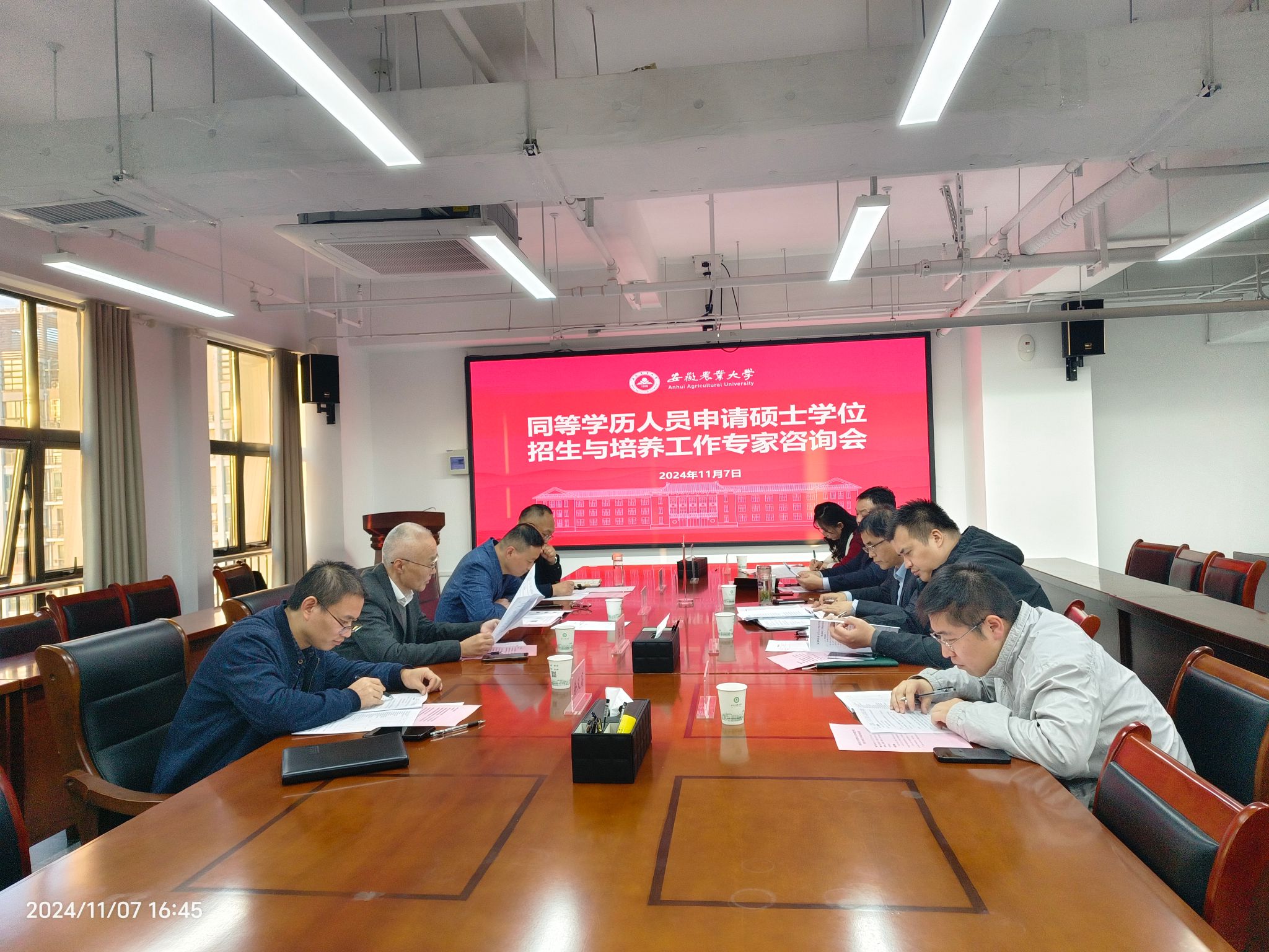 11月7日下午,乡村振兴学院、继续教育学院在勤业楼1209会议室,组织召开同等学力人员申请硕士学位招生与培养工作专家咨询会。合肥工业大学继续教育学院院长张宝、安徽财经大学继续教育学院院长王浩、安徽医科大学继续教育学院副院长徐义高、安徽师范大学继续教育学院副院长方群,我校研究生院副院长姚辰松、乡村振兴学院教授陈浩、继续教育学院相关科室负责人参加座谈。会议由学院院长刘鹏凌主持。