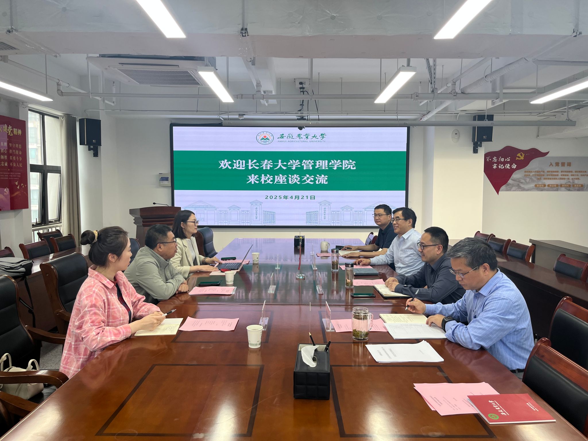 4月21日下午,长春大学管理学院副院长刘富成一行来校访问交流,乡村振兴学院、继续教育学院院长刘鹏凌热情接待了刘富成一行,党总支书记张晓伟,副院长袁修雨、徐峰参加座谈会。