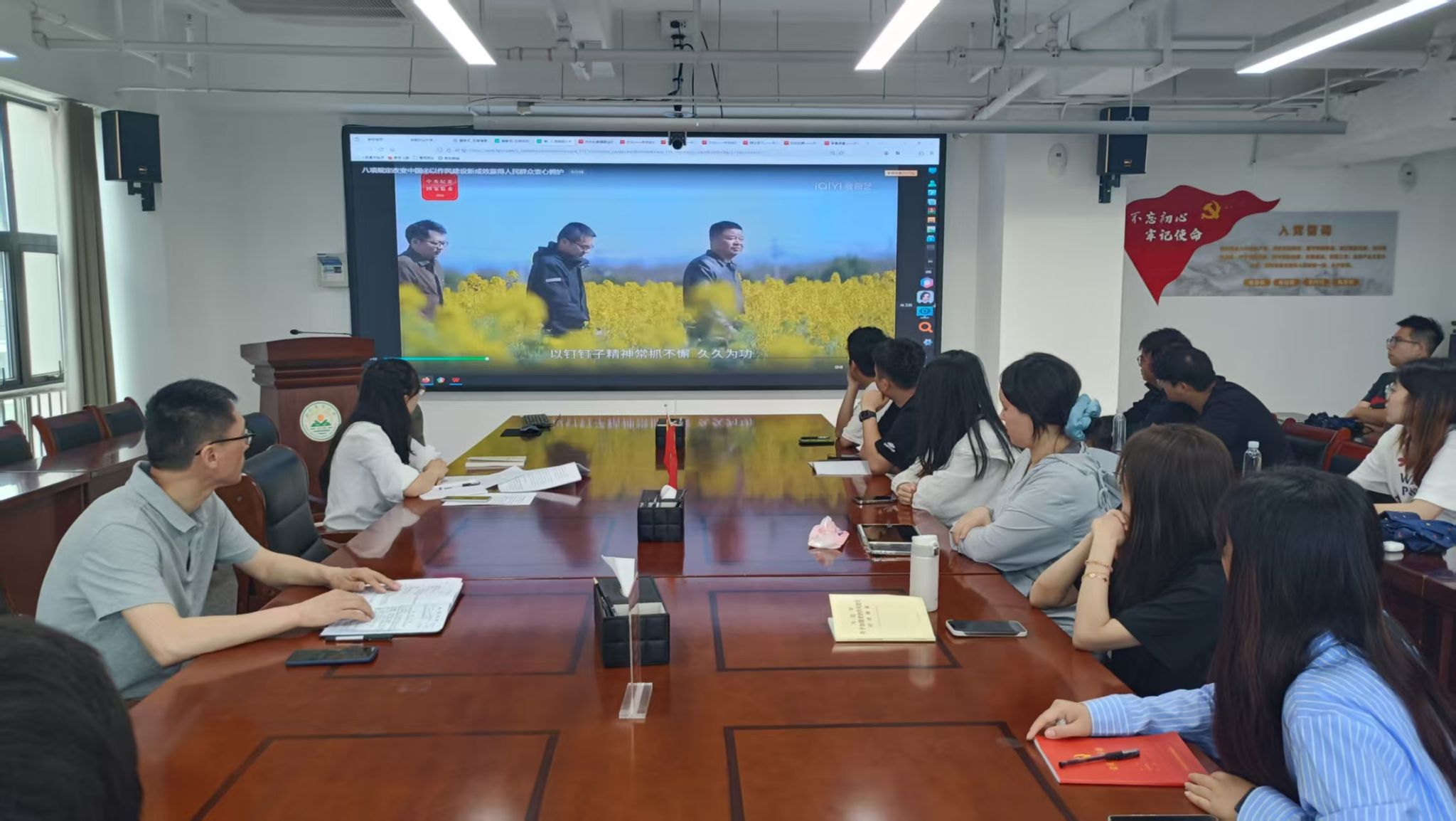 会上,党支部全体党员和积极分子观看了八项规定改变中国教育片视频。(文/图/孙芸 编辑/许皓阳 预审/徐峰 审核/张晓伟)
