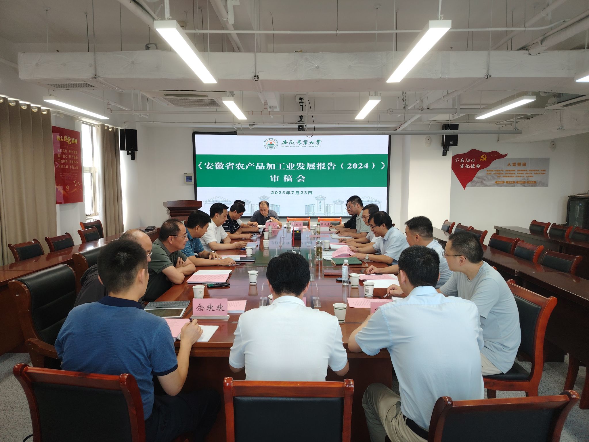 7月23日下午,我校承担的“安徽省农产品加工业产值监测分析服务”项目成果《安徽省农产品加工业发展报告(2024)》审稿会在勤业楼1209会议室举行。校党委书记张庆亮,安徽省农业农村厅党组成员、副厅长程燚出席会议。安徽省农业农村厅相关处室负责人,安徽省农业科学院相关专家参加会议。