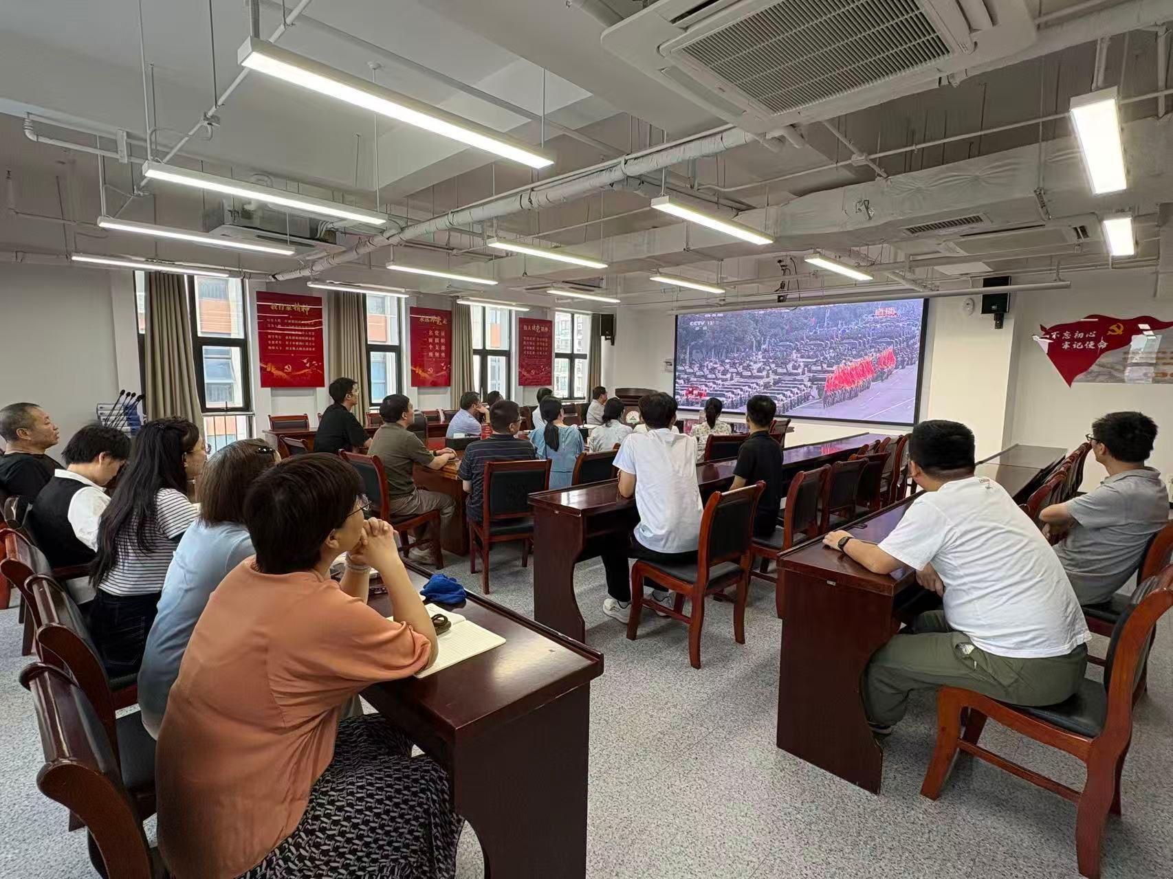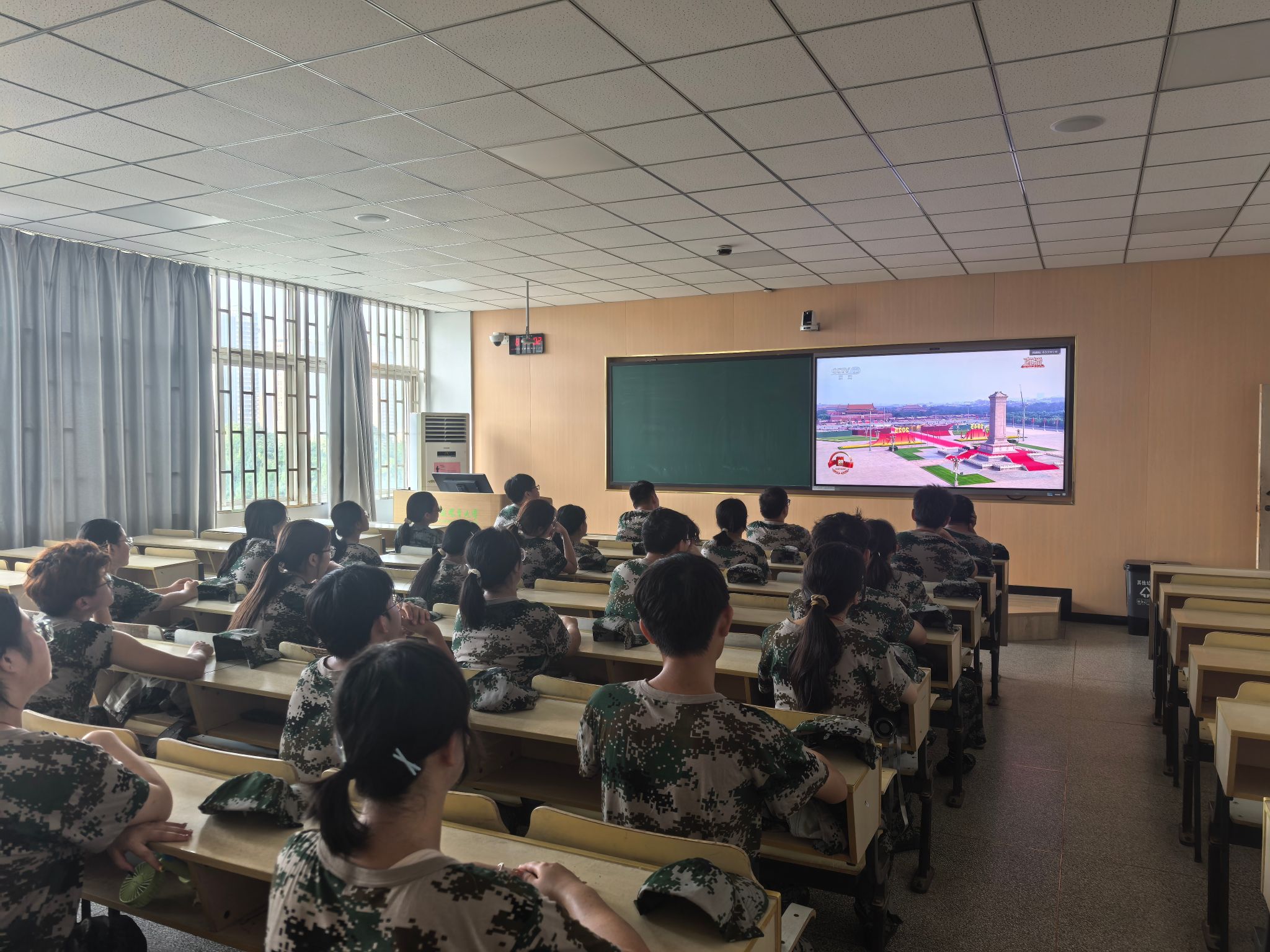 9月3日,乡村振兴学院党总支组织全体师生集中观看纪念中国人民抗日战争暨世界反法西斯战争胜利80周年大阅兵。
