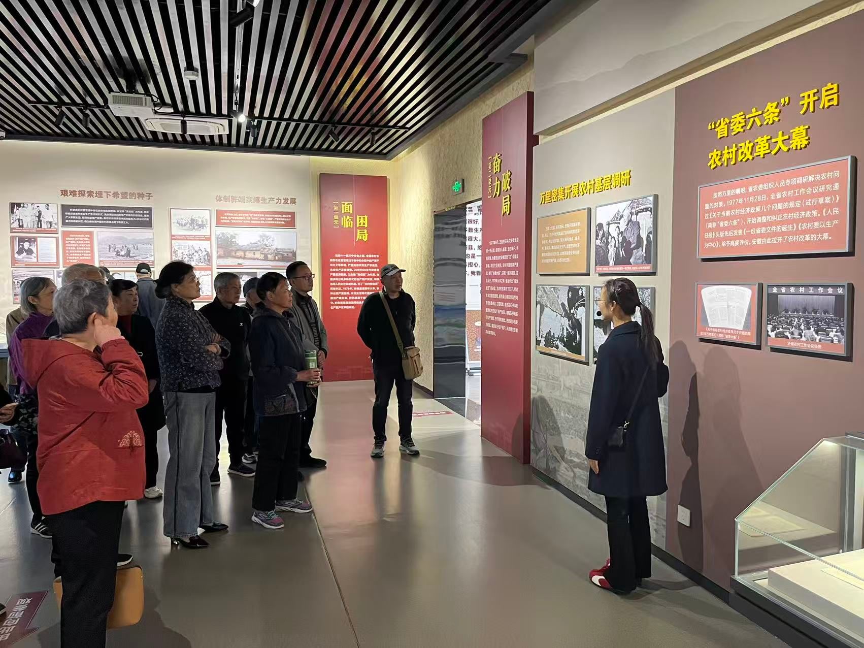 在小井庄包产到户纪念馆,讲解员深情讲述了小井庄包产到户的改革历史,让大家深刻感受到“敢为人先”的开拓创新精神和改革开放的艰辛伟大。大家纷纷表示,回顾改革开放的历史,对我们当前统一思想、凝聚共识,总结“十四五”、谋划“十五五”,具有重要意义;要认真学习贯彻党的二十届四中全会精神,积极献言献策,为学校学院高质量发展贡献“银发力量”。