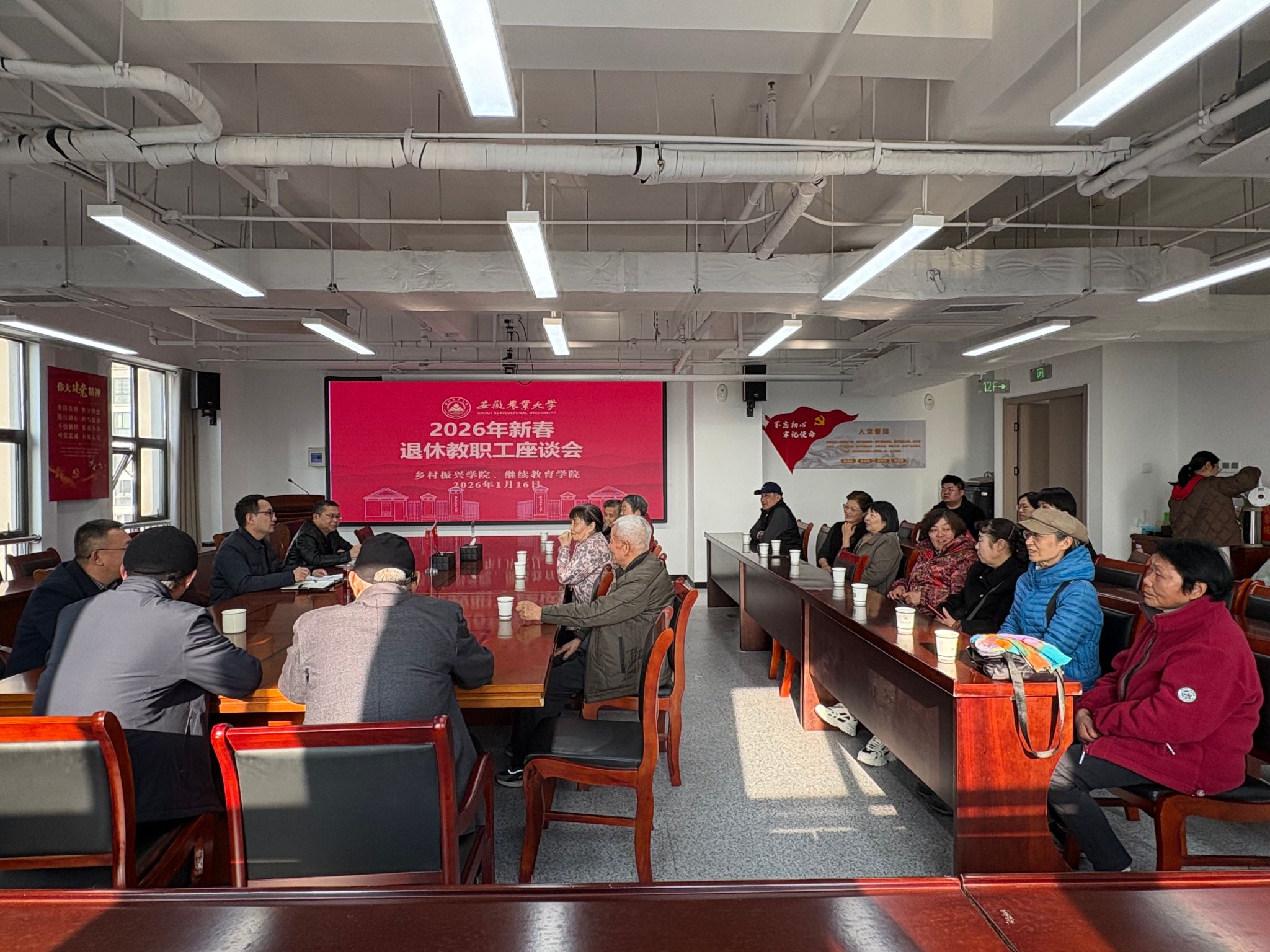 1月16日下午,学院在1209会议室举行退休教职工新春座谈会,学院领导班子成员与近20位退休教职工欢聚一堂,共迎新春。