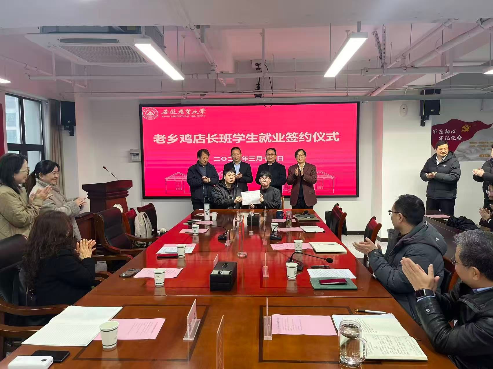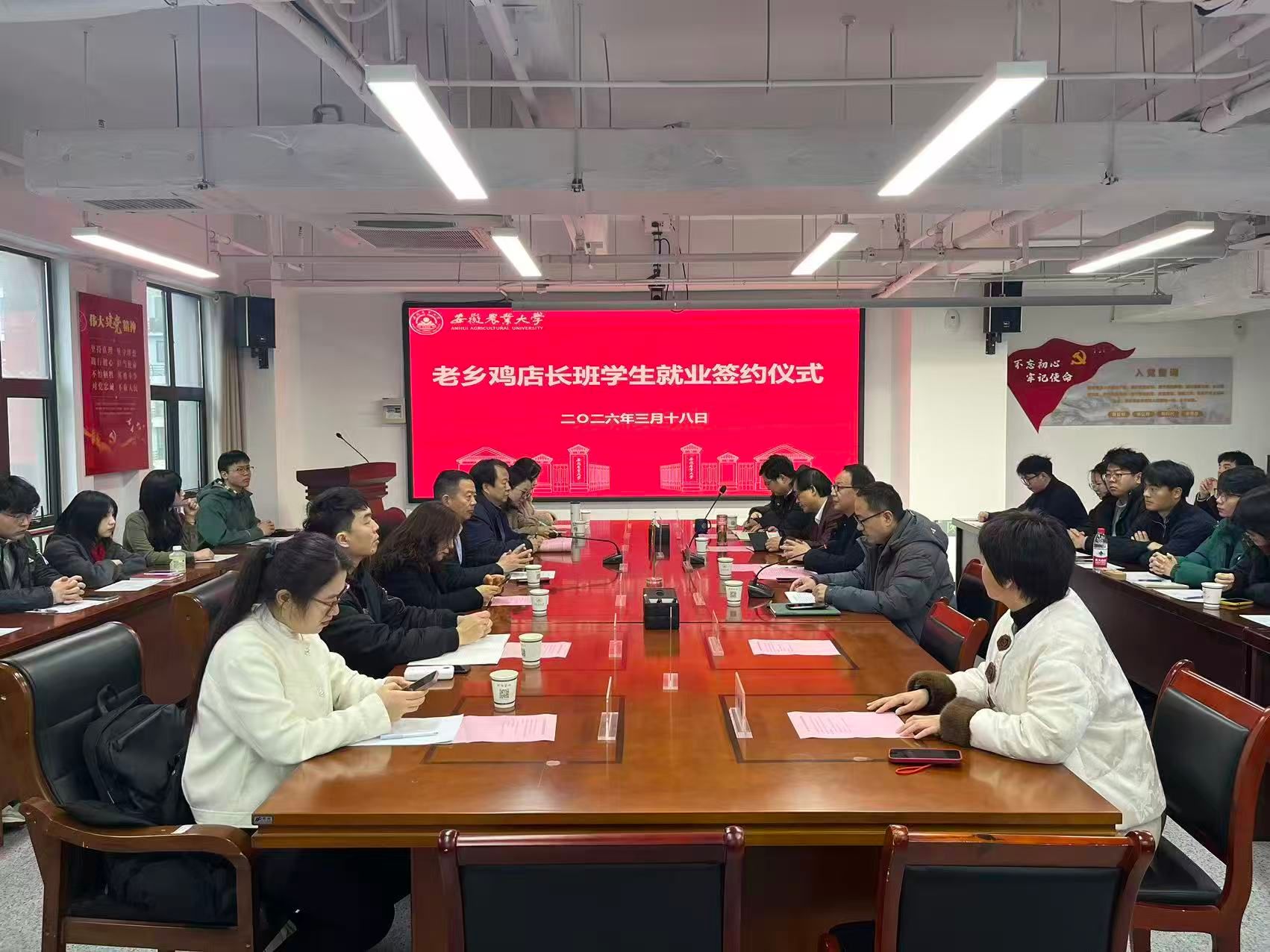 安徽老乡鸡餐饮有限公司有关部门负责人,校学生处(大学生就业指导中心)、乡村振兴学院、继续教育学院负责人参加仪式。(文:李怀琴 图:李怀琴 一审:张晓伟 二审:郑雪林 三审:曹雷 )